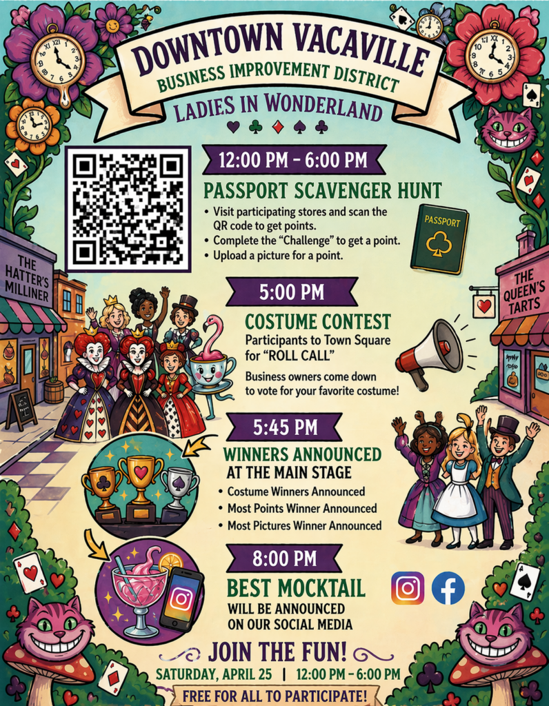 Through our dedicated efforts, the Downtown Vacaville BID ensures a vibrant, resilient, and inclusive downtown that reflects both our storied past and our ambitious future